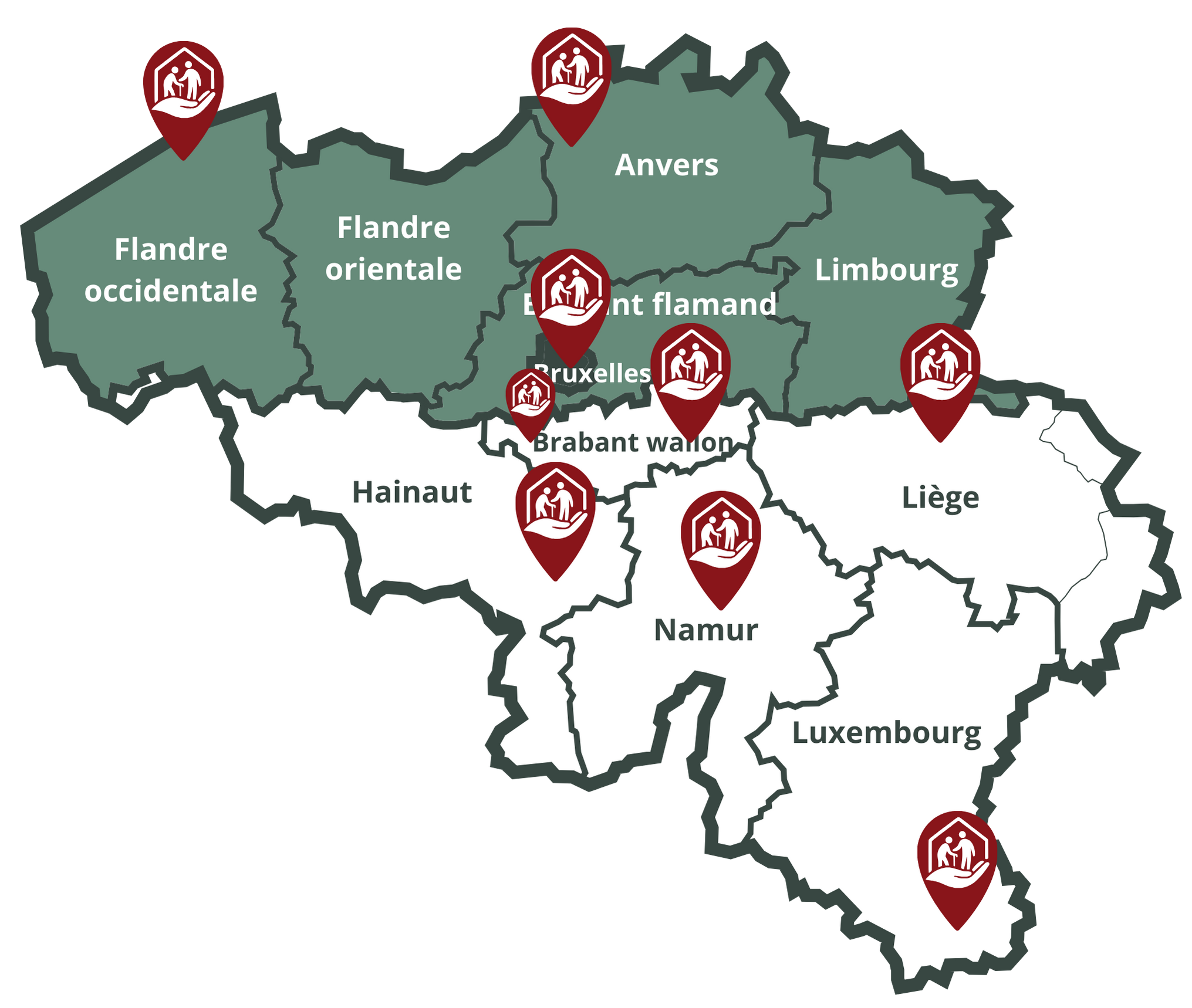 Nous couvrons une large partie du Brabant wallon, incluant : La Hulpe, Lasne, Waterloo, Rixensart, Wavre ainsi qu'au Hainaut, Namur, Liège et au Luxembourg. Nos intervenants se déplacent facilement et assurent un suivi régulier, stable et flexible.